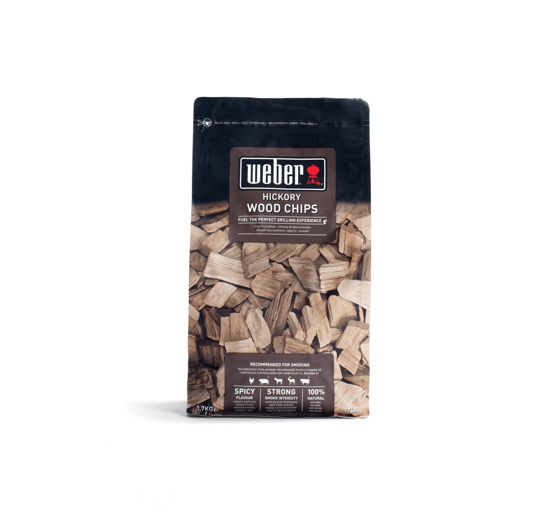 Las virutas de madera Hickory Weber están diseñadas para dar a tus carnes un ahumado intenso y delicioso en barbacoas de carbón, briquetas o gas. Se recomienda rehogar las virutas en agua durante 20 minutos antes de colocarlas sobre el carbón o en los ahumadores Weber, asegurando que el humo se genere de manera uniforme y penetre en los alimentos gracias a la tapa.