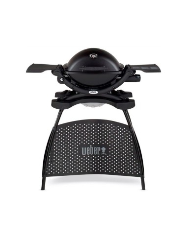 Barbacoa de gas portátil Weber Q 1200N con quemador de alta eficiencia de 2,93 kW, rejillas de hierro colado vitrificado y mesas laterales, ideal para terrazas y balcones.