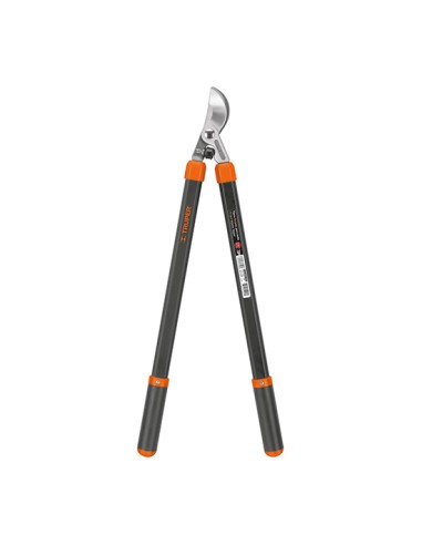 La tijera de poda de dos manos tipo California está diseñada para ofrecer máxima resistencia, ligereza y comodidad en trabajos intensivos. Su cabeza forjada en acero garantiza cortes potentes y duraderos, mientras que los mangos de aluminio aportan ligereza sin perder robustez. Incorpora grip antideslizante de TPR y polipropileno, que mejora el agarre y la seguridad durante el uso. Además, sus topes amortiguadores reducen el impacto, proporcionando una experiencia de corte más cómoda y eficiente. Ideal para poda de ramas gruesas con precisión.